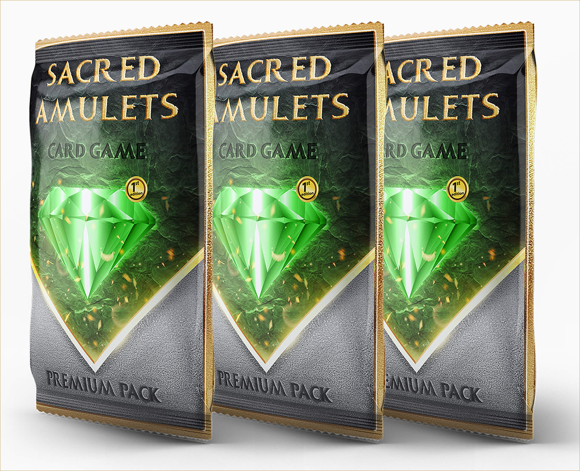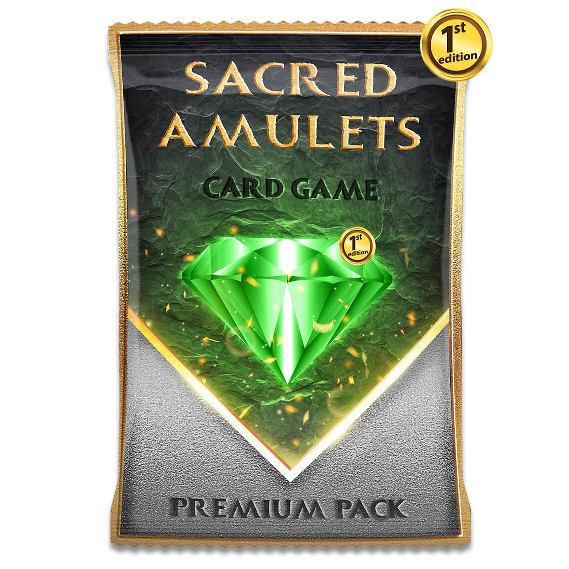 Premium Pack 1st Edition from Sacred Amulets Limited Supply, boost up your deck and get exclusive cards, each pack contains 9 Sacred Amulet trading cards.