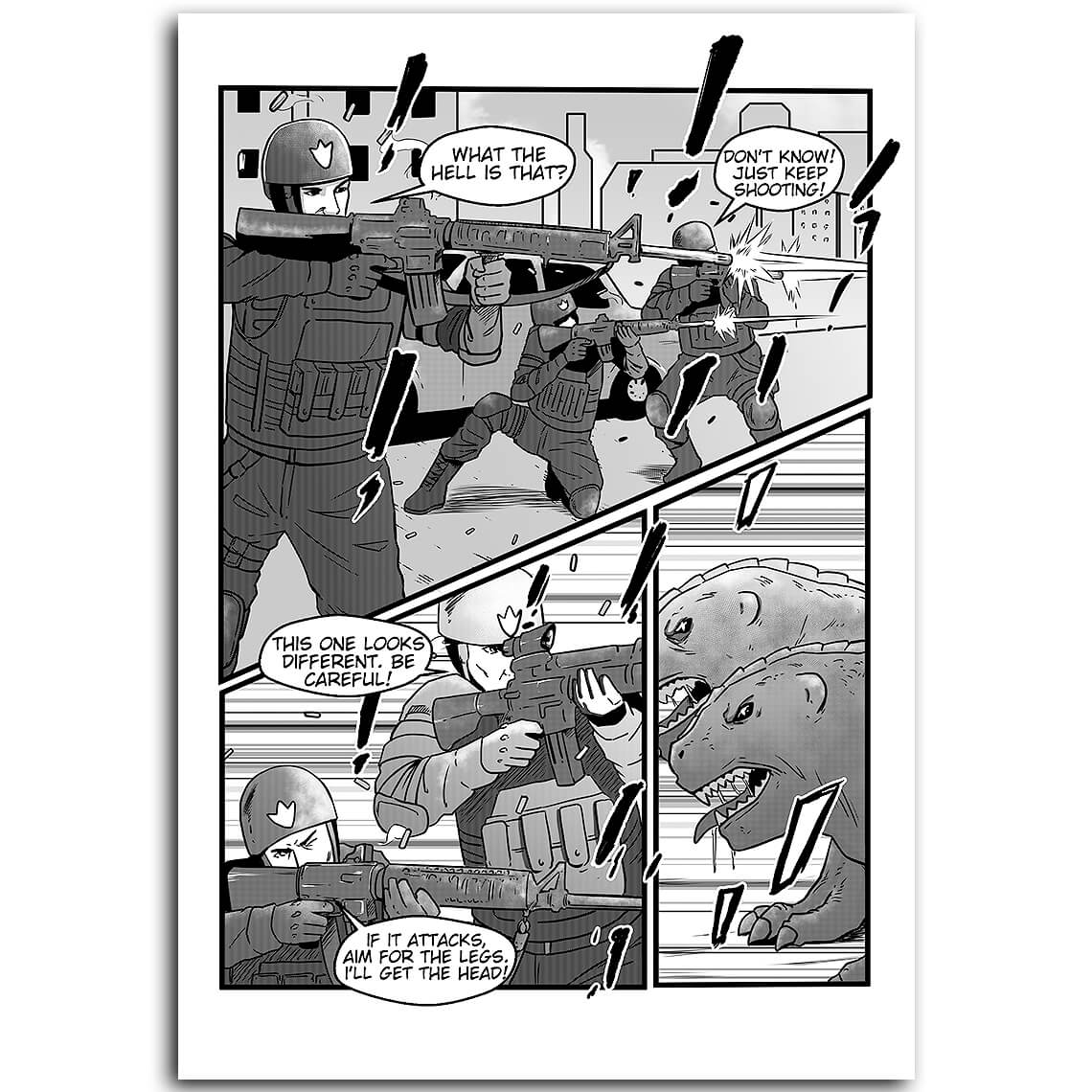 HARD COPY ONLY: You will receive this comic in black & white with a few coloured pages – in a printed Hard Copy version. Downloadable versions are NOT available at this time.